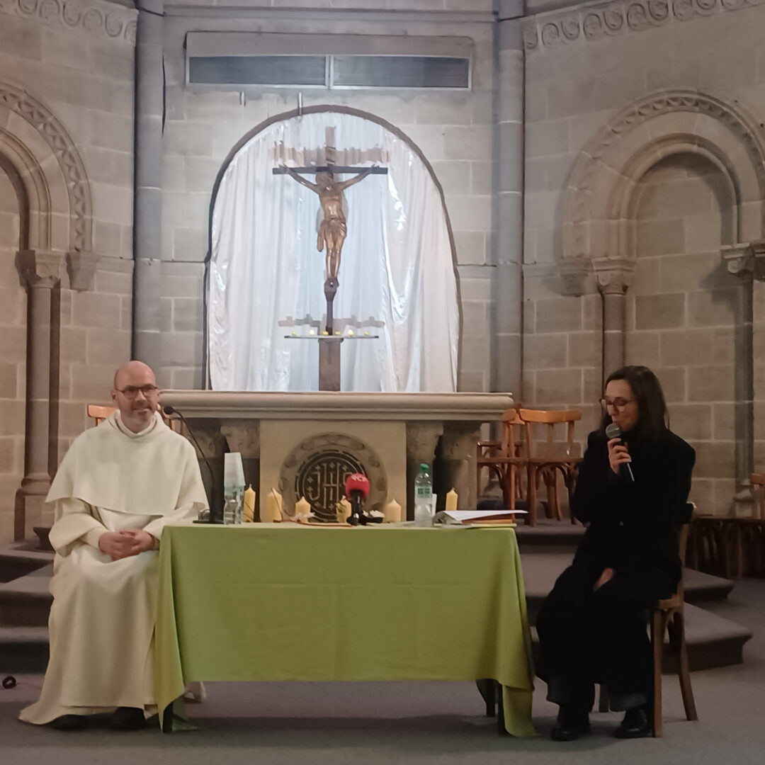 Dans notre quête de la joie, notre intervenant, le frère Sylvain Detoc op. nous a invités à une simplicité réaliste dans l’accueil de nos vies. Être chrétien ne dispense pas d’être humain. Comme chrétiens, nous puisons notre joie dans les moyens surnaturels, comme la prière et les sacrements mais aussi dans ce qui fait la pâte de nos vies humaines – les amitiés, les petites joies quotidiennes, le don de soi aux autres. Le naturel et la grâce ne sont pas en opposition mais se fécondent mutuellement. Le frère Sylvain a souligné qu’il est normal et de vivre des moments de découragement où nous perdons la joie. Revenir à la joie passe par l’acceptation d’être ce que nous sommes et du fait que la réalité de notre vie terrestre est assumée par la gloire de notre nature d’enfant de Dieu.
