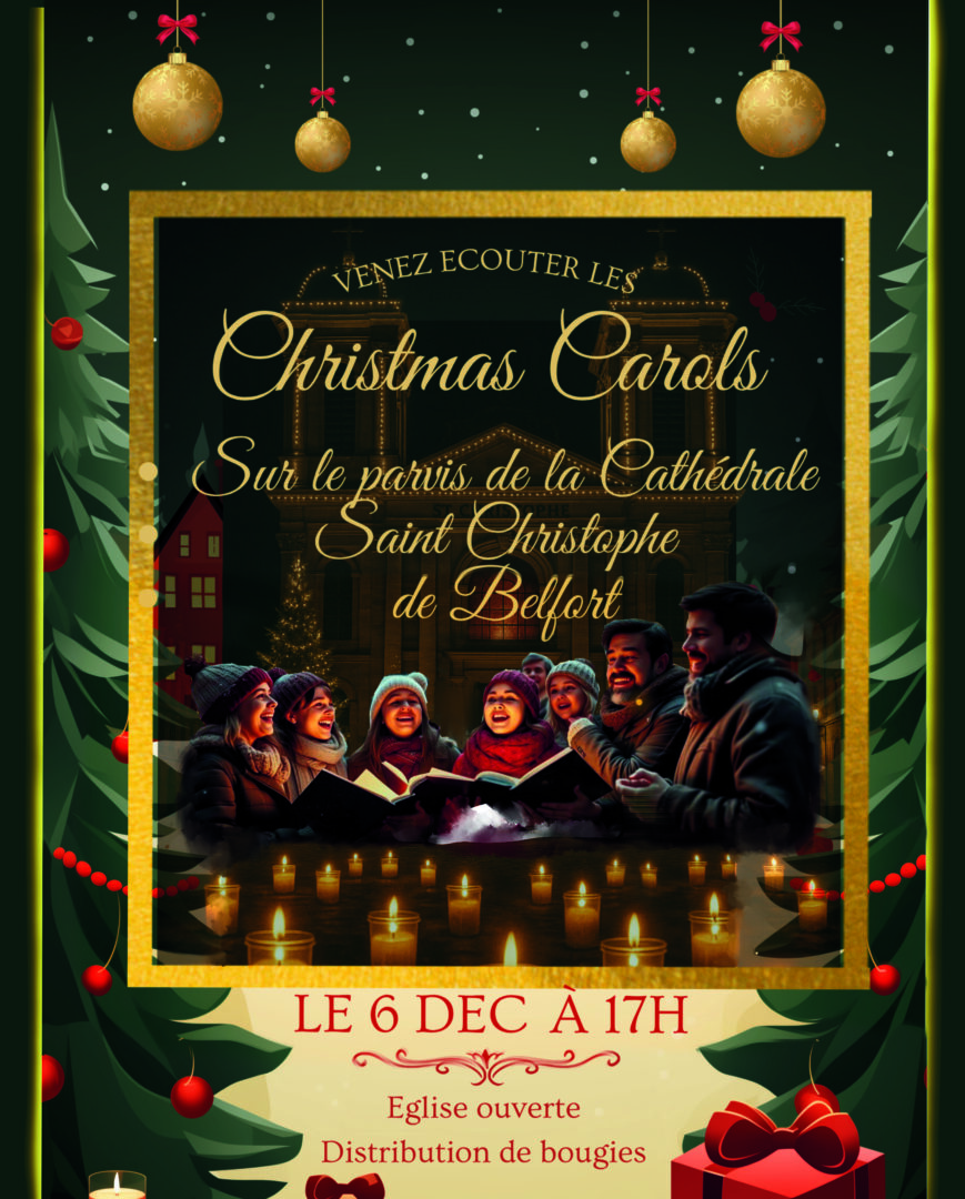 Rendez-vous le 6 décembre prochain à 17h sur la place d’Armes, une heure avant le lancement du Mois Givré. Une chorale spontanée de musiciens de la paroisse de Belfort entonnera des cantiques de Noël pour les promeneurs de passage.