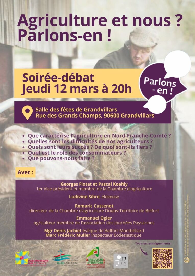 L’équipe diocésaine de la Mission de l’Église en Monde rural nous invite à une soirée Parlons-en ! sur l’agriculture le 12 mars 2026 à 20h à la salle des fêtes de Grandvillars.