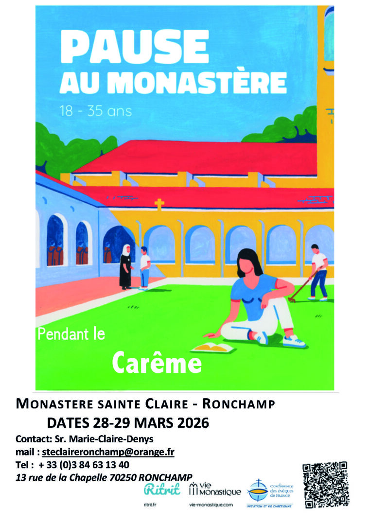 Les sœurs clarisses de Ronchamp proposent aux jeunes entre 18-35 ans un week-end « Pause au monastère » du 28 au 29 mars 2026.
