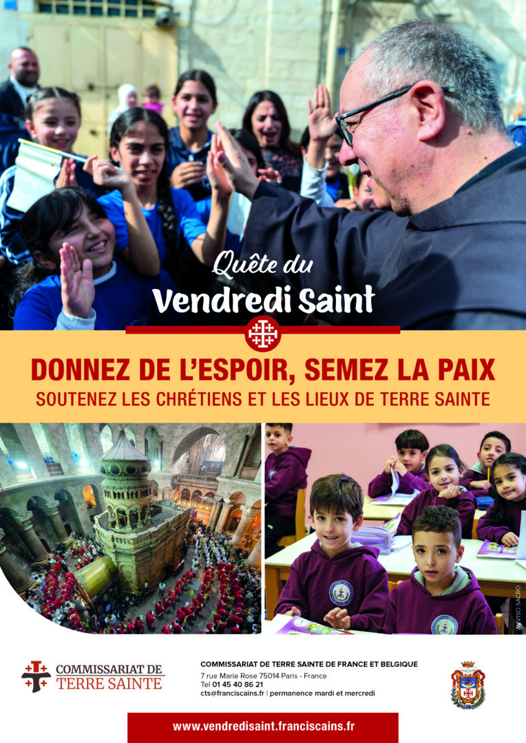 La quête impérée du Vendredi Saint est réalisée dans toutes les paroisses catholiques du monde. Elle est envoyée directement en Terre Sainte pour soutenir les chrétiens qui y vivent aujourd’hui.