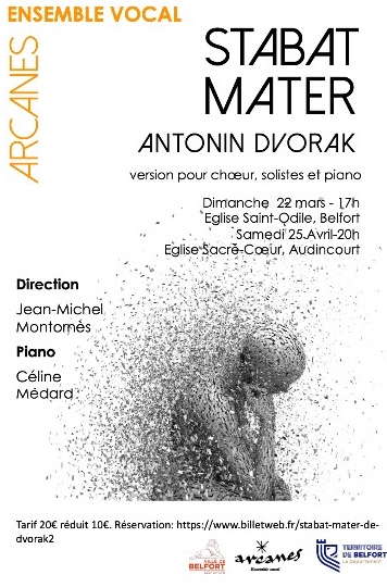 L’Ensemble vocal Arcanes, chœur semi-professionnel composé d’une trentaine de chanteurs placés sous la direction de Jean-Michel Montornes, vous invite à découvrir une œuvre magistrale et profondément émouvante du répertoire sacré : le Stabat Mater d’Antonín Dvorák.