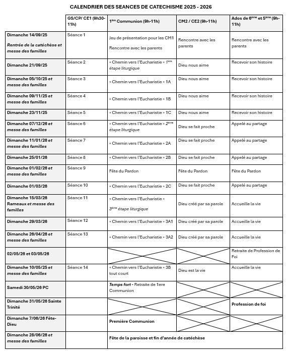 • Dimanche 28/06/26 :        Fête de fin d’année du catéchisme