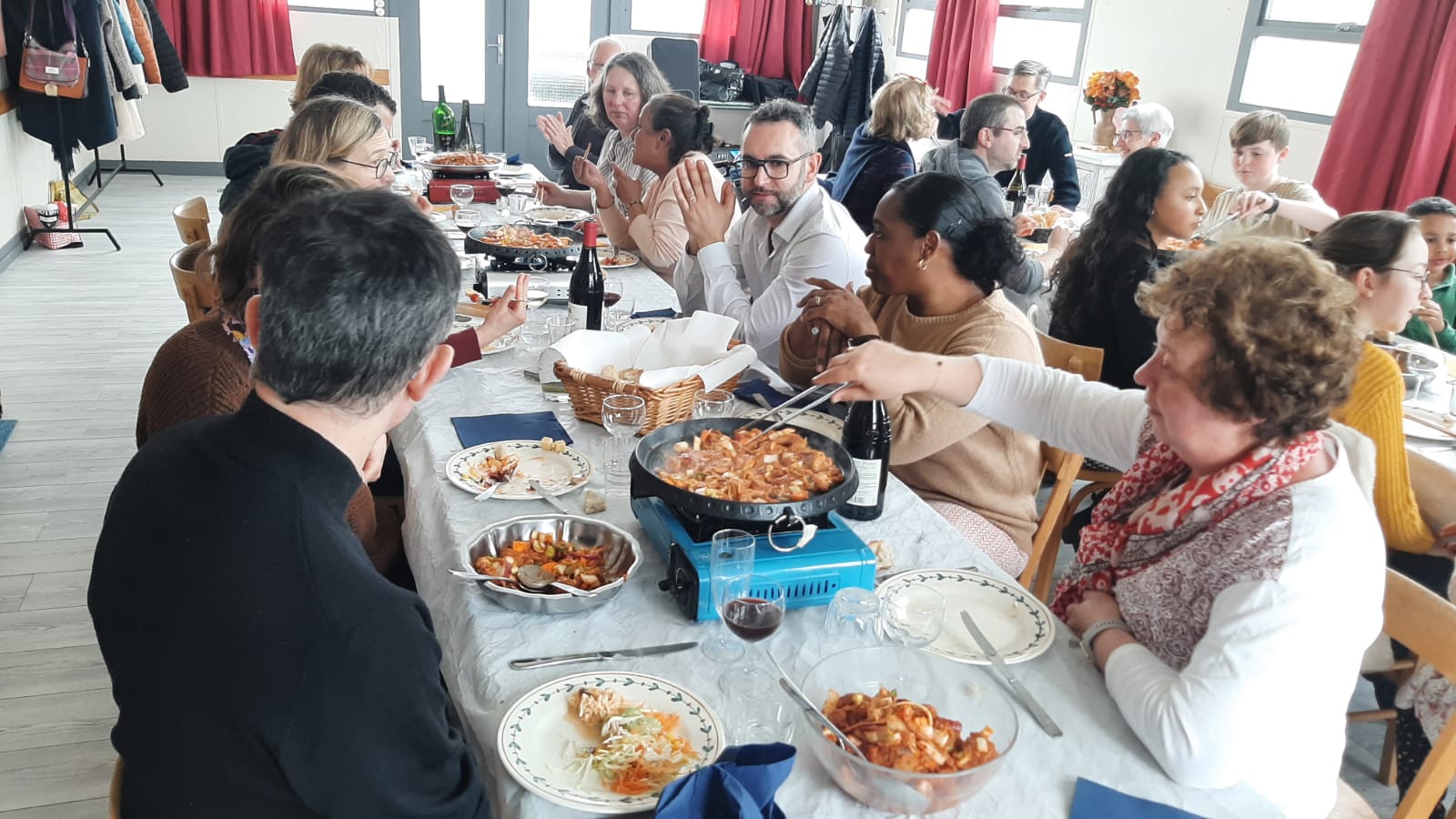 Samedi 8 Février 2025, « opération entraide » à Voujeaucourt, moment de convivialité dans la salle protestante
