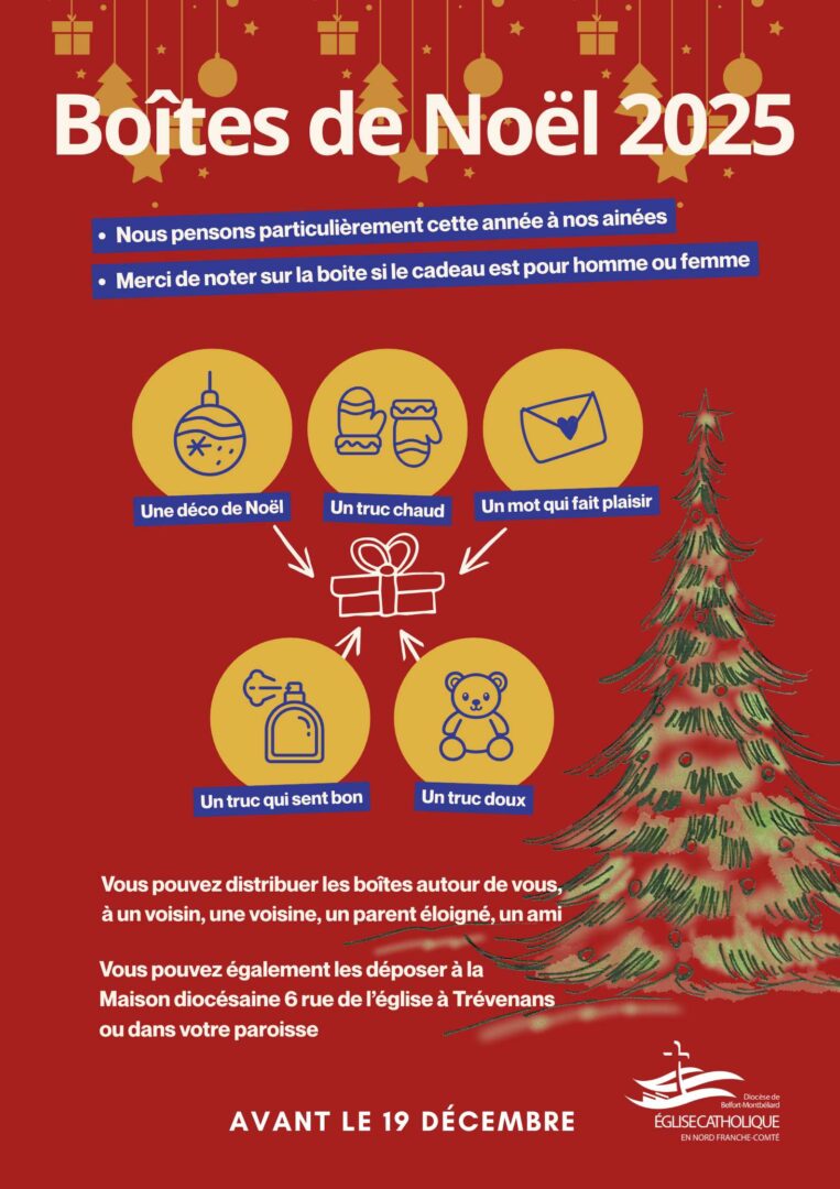 Le service de la solidarité du diocèse renouvelle l’opération des boîtes fraternelles en ce Noël 2025 en vous invitant de constituer des boîtes à l’attention des personnes âgées isolées dans les EHPAD.