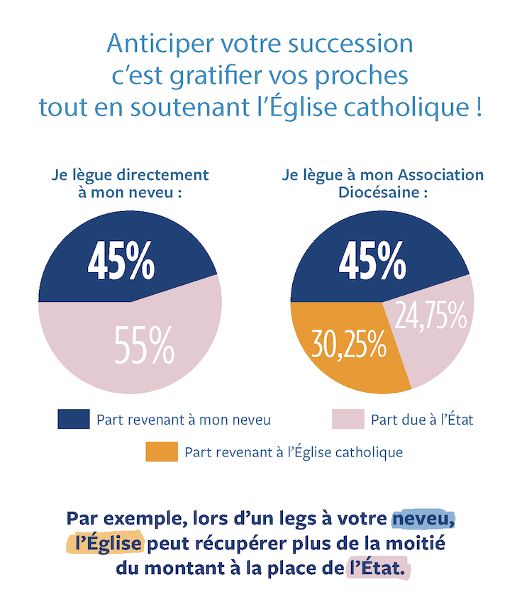 - Léguer à l’Église, c’est lui donner dans l’avenir les moyens matériels de poursuivre sa mission d’évangélisation, de transmission de la foi, de célébration des sacrements, de charité,de prière.